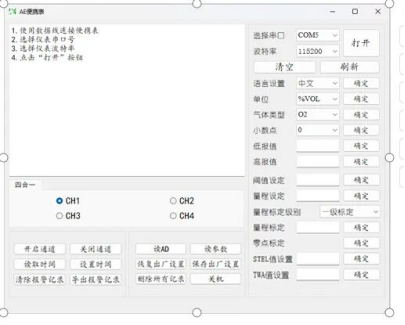 两大核心升级,直击化工作业痛点。视觉上,告别旧版单色断码屏,采用全新彩色TFT屏幕,即使在化工车间强光或昏暗环境下,浓度数值、报警状态也清晰可见,无需反复凑近查看,提升作业效率。智能上,突破旧版仅仪表操作的局限,支持“仪表+上位机”双模式,化工企业可通过电脑软件批量完成标定、修改报警阈值、切换语言等操作,大幅降低多设备管理难度,尤其适合大型化工园区的设备运维。