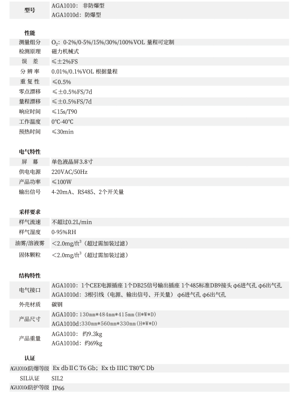 咨询:AGA1010d顺磁氧气分析仪